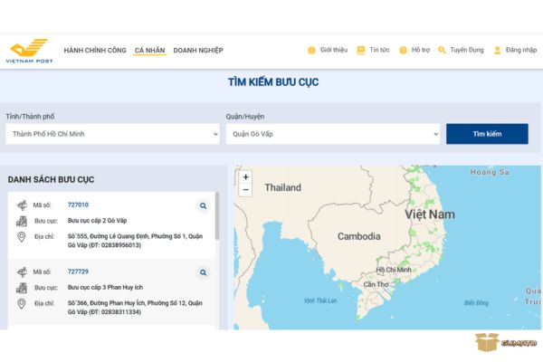 Việc tìm kiếm địa chỉ bưu cục rất đơn giản, chỉ cần truy cập trang web chính thức của Bưu điện Việt Nam. Sau đó nhập thông tin về tỉnh/thành phố, quận/huyện bạn đang có mặt danh sách các bưu cục gần đó sẽ hiện ra.